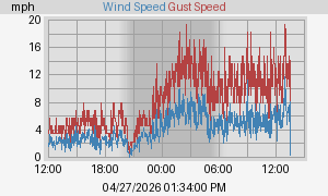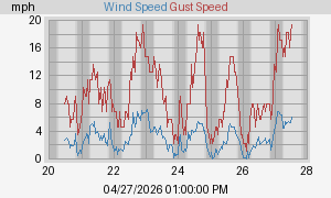 max: 11 mph at 09:00:00 AM max gust: 19 mph at 02:31:29 AM