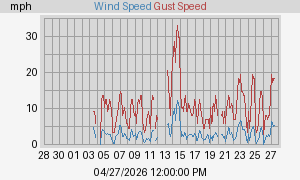 max: 17 mph at 04/14/2026 12:46:00 PM max gust: 33 mph at 04/14/2026 12:23:23 PM